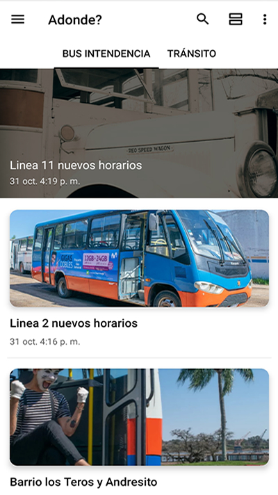Bus en tiempo real, Recorrido de líneas (*), paradas(*), horarios(*), cambios de frecuencias, toda la información que necesitas para organizar tus viajes dentro de la ciudad. Estas son algunas de las funcionalidades que ya implementamos y otras * en etapa de desarrollo.